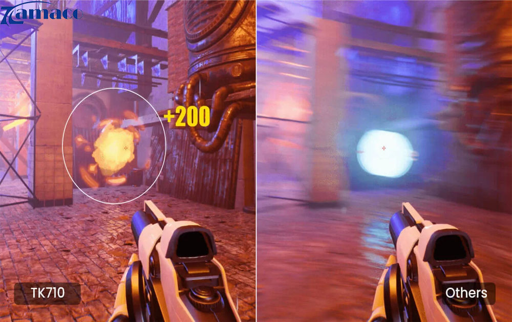 Độ phân giải 4K UHD với 8.3 triệu điểm ảnh riêng biệt cùng công nghệ HDR10 Với 8.3 triệu điểm ảnh riêng biệt cùng công nghệ HDR10 mang đến hình ảnh 4K UHD sắc nét, chi tiết đến từng pixel. Từng chuyển động đều mượt mà, không bị giật lag, giúp bạn có những trải nghiệm chơi game tuyệt vời nhất. TK710 là lựa chọn hoàn hảo cho các game thủ đam mê.