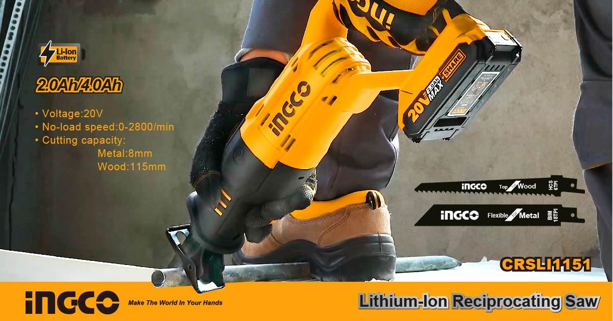 Model này chỉ có thân máy, không có pin và sạ Máy cưa kiếm dùng pin INGCO CRSLI1151 hoạt động bằng nguồn năng lượng của viên pin Li-Ion 20V cho nên sẽ mạnh mẻ và có thời lượng sử dụng lâu hơn những máy 12v, 18v. Ưu điểm của dòng máy cưa kiếm này là có tuổi thọ sử dụng cao và kích thước gọn gàng nên việc mang theo khi có việc cần sử dụng tới là hết sức đơn giản, lớp vỏ ngoài của máy được làm bằng nhựa ABS nên có độ bền cao, nếu chẳng may máy bị rơi rớt xuống đất thì cũng chẳng sao cả!'