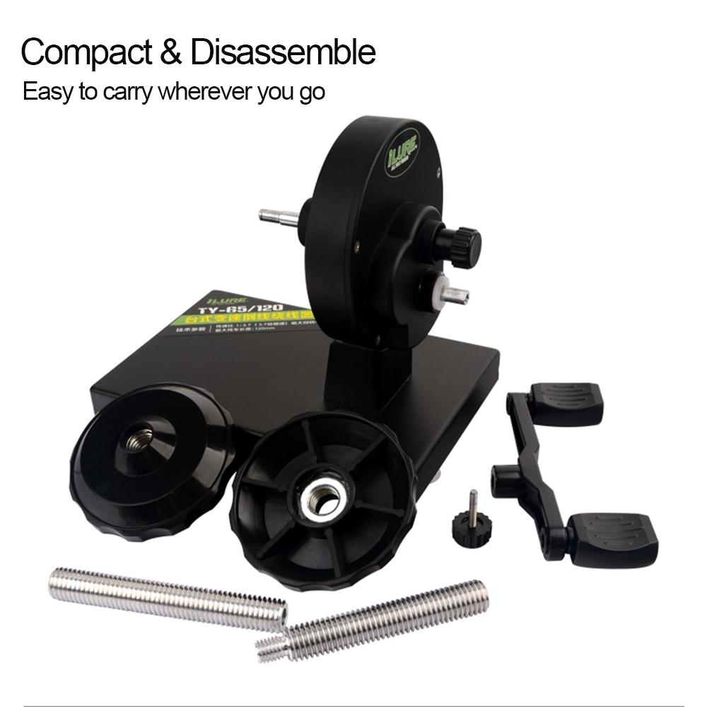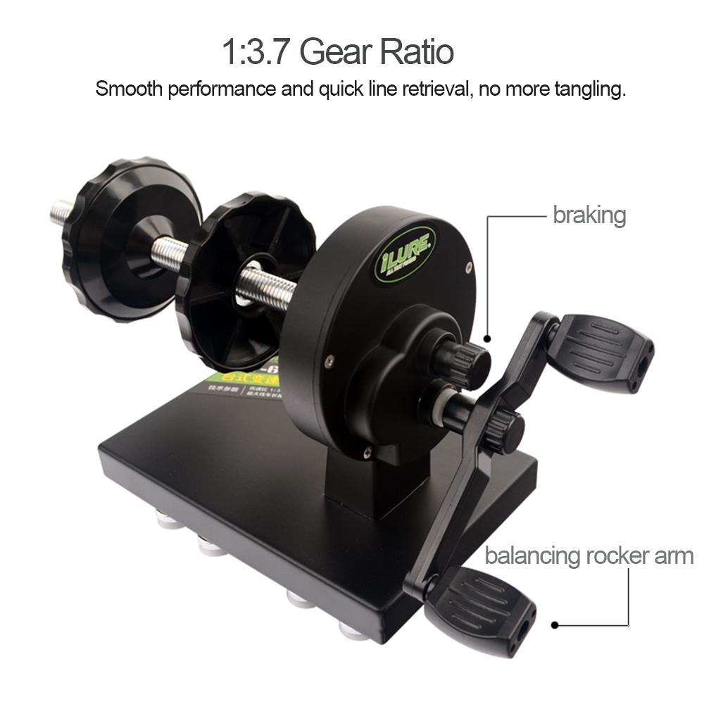 Features: 16 suction cups deliver strong power, easy to fix on the table, glass, tile, and other smooth surfaces. Threaded aluminum shaft with an extended shaft is adjustable to fit max. line spool length up