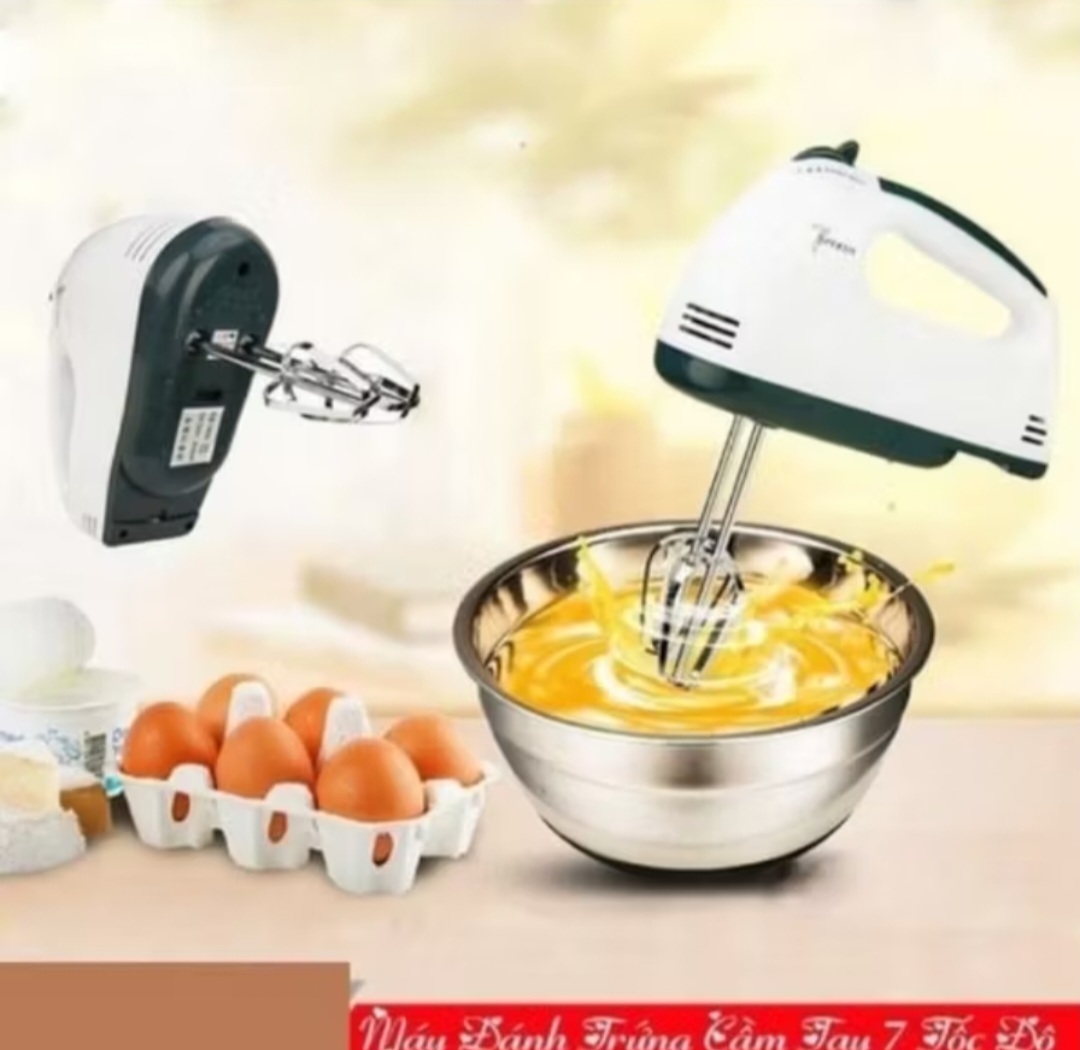 Máy đánh trứng cầm tay 7 tốc độ với ưu điểm nhẹ nhàng, kiểu dáng đẹp, giúp khâu làm bánh nhanh chóng tức thì, các sản phẩm máy đánh bột, đánh trứng cầm tay hiện đại đã giúp các bà nội trợ bớt lo lắng nhiều về khâu đánh bột, trứng sao cho đều và mịn và không bị mỏi tay.