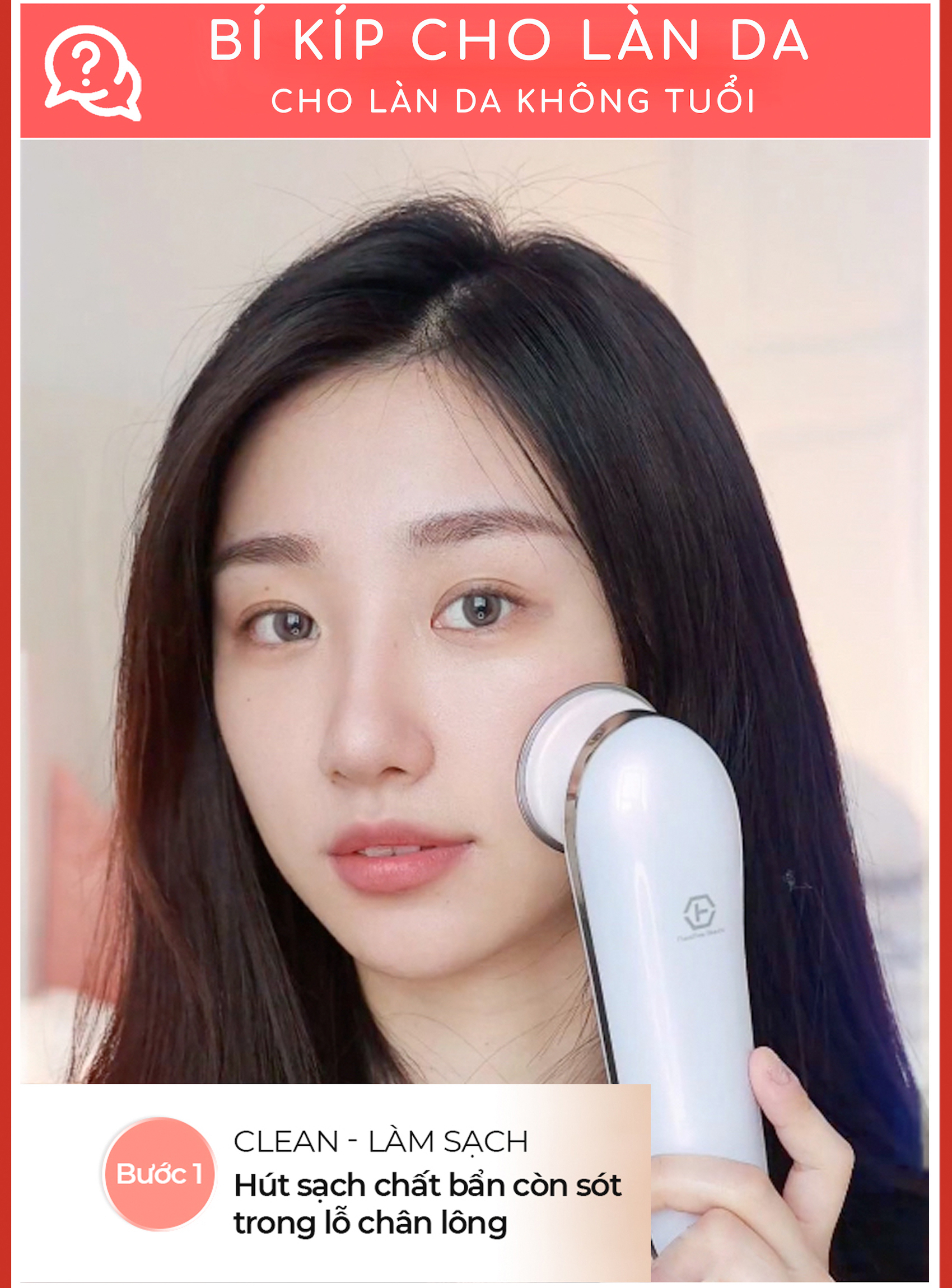 Máy Loại bỏ bụi bẩn,cặn trang điểm an toàn, Da sạch sâu căng tràn * Ưu điểm vượt trội: Sóng âm Ultrasonic giúp loại bỏ bụi bẩn và tẩy sạch tế bào trên da một