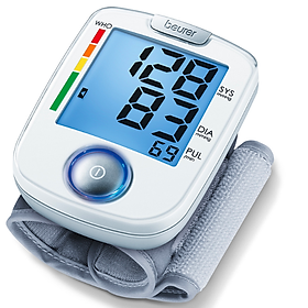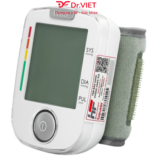 Với máy đo huyết áp cổ tay BC44 của Beurer, bạn có thể đo được huyết áp của mình nhanh chóng và dễ dàng, máy có thể lưu các kết quả đo để xem lại. Máy đo huyết áp cổ tay Beurer BC44 có chức năng phát hiện bệnh rối loạn nhịp tim khi có triệu chứng nhịp tim bất thường. Hiện nay Beurer, đạt tiêu chuẩn công nghệ Châu Âu tin cậy được phân phối gần 100 quốc gia trên toàn cầu. Trọn bộ sản phẩm: 01 Máy đo huyết áp cổ tay, 2 pin AAA LR03 1.5 V, Túi đựng, Hướng dẫn sử dụng. Tính năng: -Vị trí đo: Cổ tay trái -Đo huyết áp tối đa (tâm thu), đo huyết áp tối thiểu (tâm trương). -Đo nhịp tim. Lưu được kết quả đo gần nhất. -Màn hình lớn tới 2.0 inch, hiển thị các thông số to, rõ ràng, dễ dàng quan sát. -Kiểu dáng nhỏ, gọn dễ mang theo. -Cảnh báo nhịp tim bất thường. -Tự động cảnh báo thao tác sai khi đo huyết áp. -Cảnh báo huyết áp bất thường theo vạch màu.  -Chu vi vòng bít 14 - 19.5 cm, sau khi đeo vào cổ tay, máy sẽ tự động bơm khí, tự động đo trong thời gian bơm để việc đo thoải mái, nhanh hơn. -Tự động tắt khi không dùng. Cách đo huyết áp với Beurer BC44: