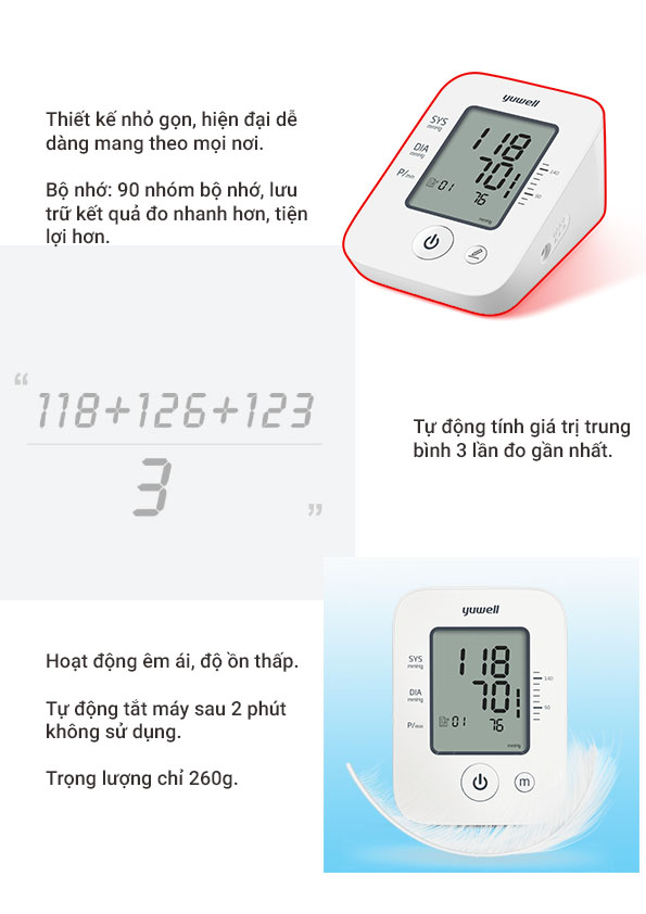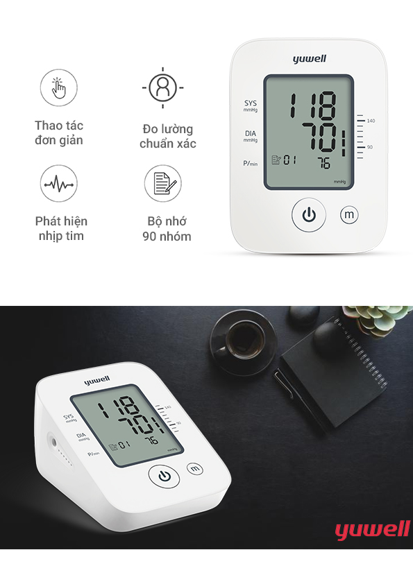 Đo huyết áp là cách tự kiểm soát huyết áp của bản thân, đặc biệt là đối với những người có tiền sử bệnh huyết áp, người già có nguy cơ mắc bệnh tăng huyết áp. Vì vậy, việc đo huyết áp tại nhà có thể góp phần kiểm soát sự tăng/giảm huyết áp bất ngờ để phòng tránh các nguy cơ tai biến do huyết áp gây ra như tai biến mạch máu não, đột quỵ bằng việc điều chỉnh chế độ ăn uống, sinh hoạt cho hợp lý. Máy đo huyết áp điện tử bắp tay Yuwell YE660D: