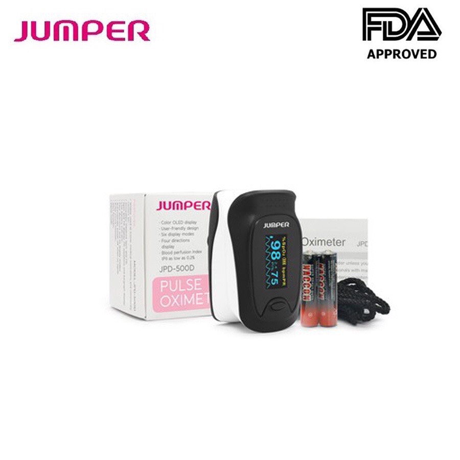 Jumper là một thương hiệu quốc tế thuộc quyền sở hữu của Jumper Medical. Là một doanh nghiệp công nghệ cao chuyên nghiên cứu, phát triển và sản xuất phần cứng y tế thông minh đồng thời tích hợp công nghệ thông tin vào các sản phẩm chăm sóc thai sản và trẻ em. Hiện tại Jumper được bán phổ biến trên 70 quốc gia và vùng lãnh thổ trên thế giới. Jumper Medical áp dụng hệ thống ISO 13485-2016 vào quy trình sản xuất, sản phẩm của Jumper đạt các chứng nhận khắt khe nhất trên thế giới như FDA, CE, SGS, CMDCAS, INMETRO, CFDA… Ngoài ra hơn 21 năm phát triển Jumper Medical sở hữu hơn 100 bằng sáng chế và bản quyền phần mềm liên quan đến thiết bị y tế và 3 trung tâm nghiên cứu và phát triển sản phẩm R&D tại châu âu và Mỹ. Giới thiệu máy đo nồng độ oxy trong máu và nhịp tim, chỉ số PI Jumper JPD-500D Máy đo nồng độ oxy trong máu Jumper JPD-500D là thiết bị y tế dùng để theo dõi độ bão hòa của oxy trong máu kết hợp với nhịp tim bằng phương pháp cảm biến quang học thông qua đầu ngón tay với độ chính xác cao. Thiết bị đạt chứng nhận FDA, Mỹ. Ưu điểm của máy Jumper SPO2 JPD-500D: