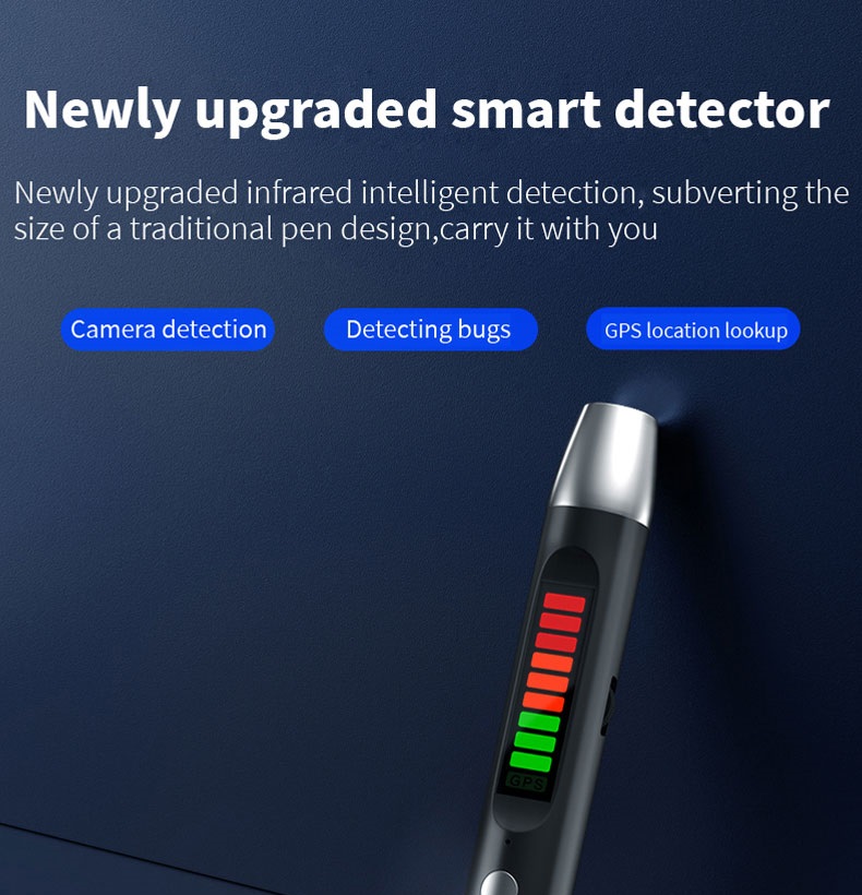 Mô Tả sản phẩm: Tên sản phẩm: Chất liệu: ABS Kích thước: 102x52x21mm Công suất: 3.7V/300mA pin lithium Phạm Vi phát hiện: 1MHZ-6000MHZ Phát Hiện hồng ngoại Tầm Xa: 10cm đến 15m Tính Năng sản