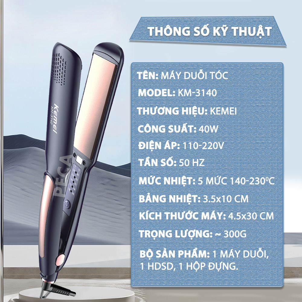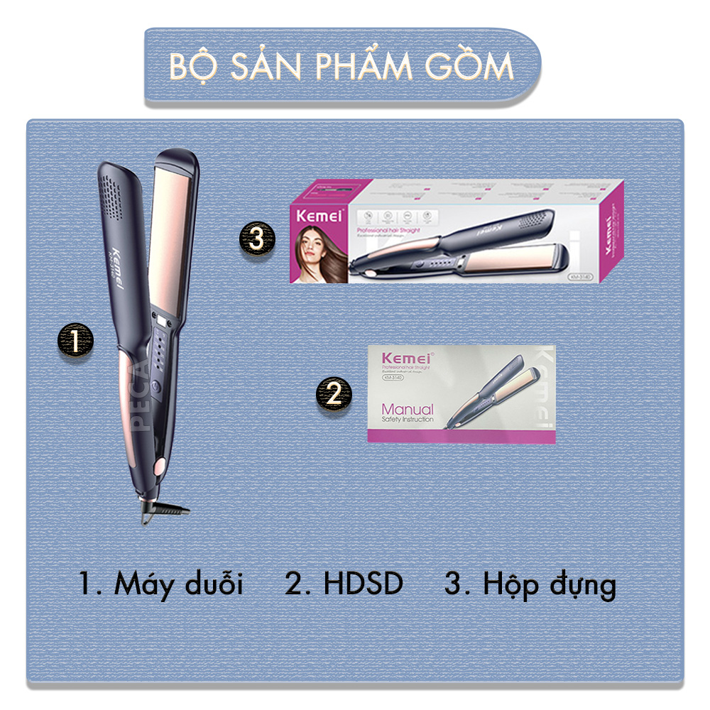 MÁY DUỖI TÓC KEMEI KM-3140 BẢNG NHIỆT LỚN 3.5 CM ĐIỀU CHỈNH 5 MỨC NHIỆT PHÙ HỢP SỬ DỤNG VỚI MỌI LOẠI TÓC - HÀNG CHÍNH HÃNG Máy duỗi tóc Kemei KM-3140 là sự lựa chọn hoàn hảo cho