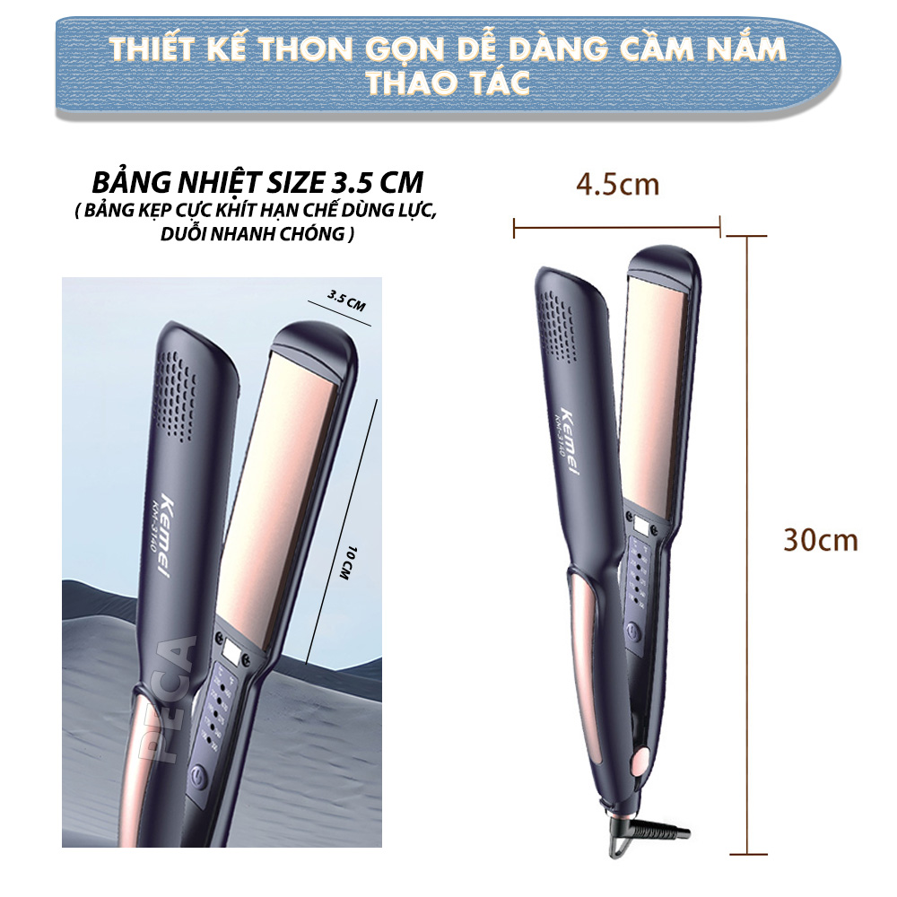 ✨Máy duỗi tóc Kemei KM-3140 bảng nhiệt lớn 3.5 cm, điều chỉnh 5 mức nhiệt sử dụng được cho mọi loại tóc - Hàng chính hãng