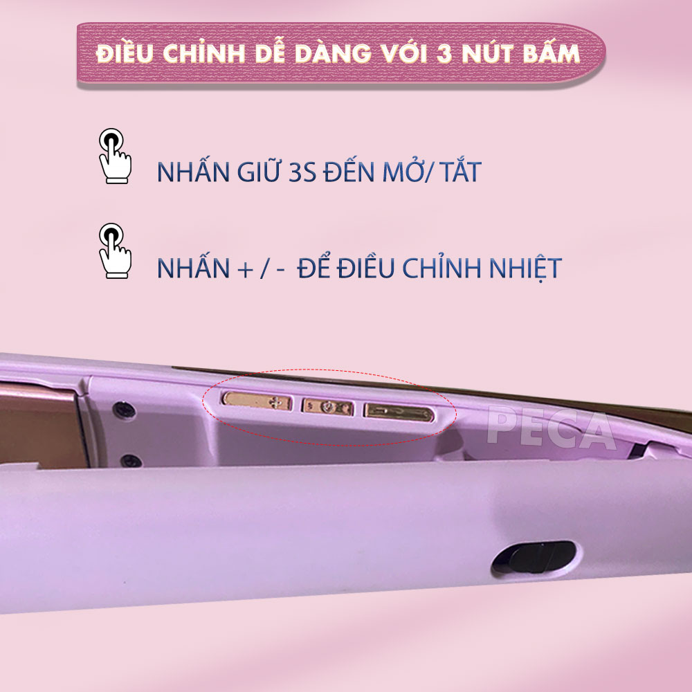 Mua tại TiktokMÁY DUỖI TÓC KEMEI KM-3142 CHUYÊN NGHIỆP ĐIỀU CHỈNH 10 MỨC NHIỆT PHÙ HỢP SỬ DỤNG VỚI MỌI LOẠI TÓC - HÀNG CHÍNH HÃNG Máy duỗi tóc Kemei KM-3142 là sự lựa chọn hoàn hảo cho những ai muốn sở hữu mái tóc thẳng mượt mà như vừa được chăm sóc tại salon ngay tại nhà. Với thiết kế hiện đại, màu sắc dễ thương tông hồng nổi bật, máy không chỉ là một công cụ làm đẹp mà còn là phụ kiện thời trang đẳng cấp. ƯU ĐIỂM NỔI BẬT: Máy duỗi tóc Kemei KM-3142 sử dụng tạo nhiều kiểu tóc chuyên dụng: duỗi thẳng, uốn cụp đuôi,.. 1/ Cấu tạo bảng nhiệt: Cấu tạo ba lớp: