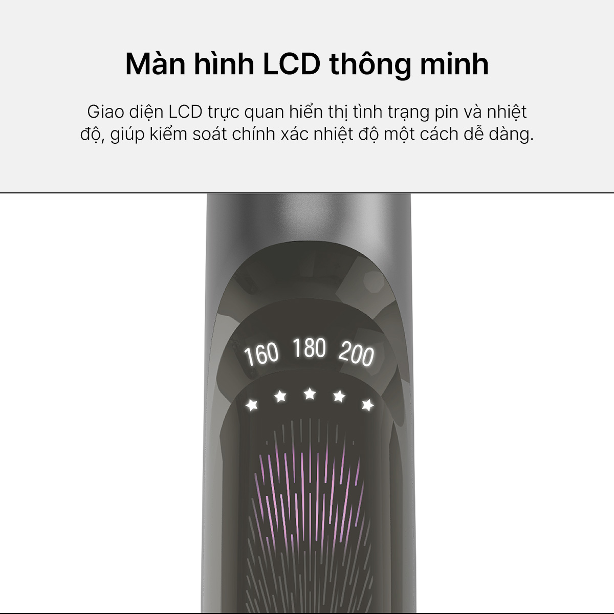 MÀN HÌNH LCD THÔNG MINH: Giao diện LCD trực quan hiển thị tình trạng pin và nhiệt độ, giúp kiểm soát chính xác nhiệt độ một cách dễ dàng.