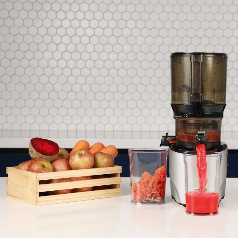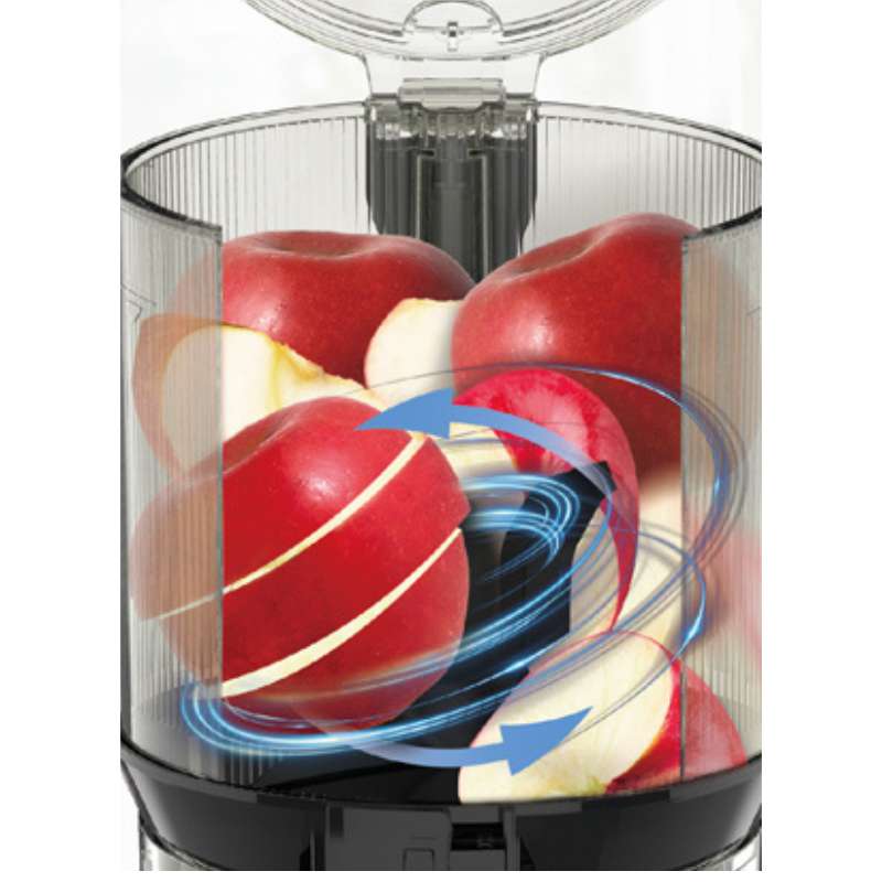 Ép kiệt hơn, giàu Vitamin và nhiều hương vị hơn! Đường kính khoang ép lớn lên đến 130mm, giúp ép nguyên quả dễ dàng mà không cần cắt nhỏ. Tốc độ quay chậm chỉ 40
