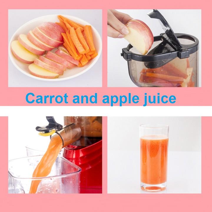 Ưu điểm nổi trội của máy ép chậm so với máy ép trái cây thông thường - Đường kính lớn 7.8cm, không cần cắt nhỏ, ép trực tiếp - Tỷ lệ nước ép nguyên chất