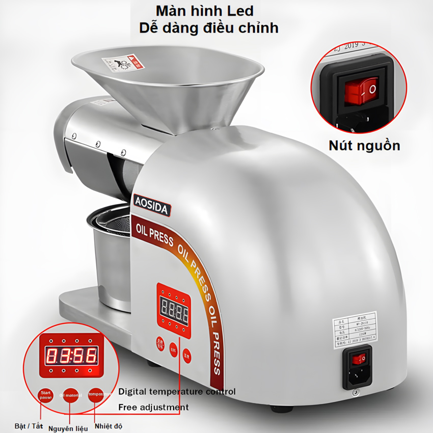 Máy ép dầu thực vật thương hiệu cao cấp AOSIDA 888A - Công suất cực đại: 1000W - Hàng Nhập Khẩu Aosida là thương hiệu nổi tiếng đến từ Anh Quốc, Aosida là hãng chuyên sản xuất