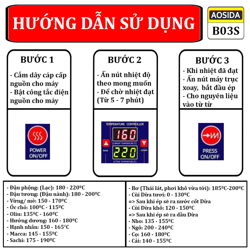 Hướng dẫn sử dụng Máy ép dầu thực vật dùng cho gia đình, quán ăn Aosida B03S