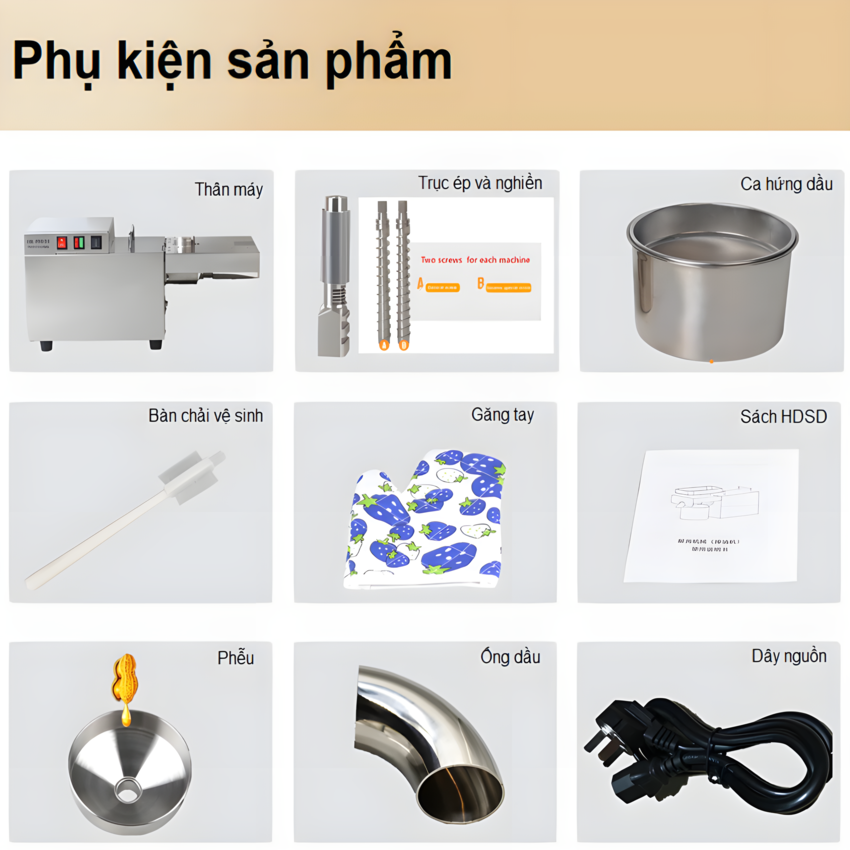 - Khối lượng ép trong 1 giờ: 8-12kg nguyên liệu