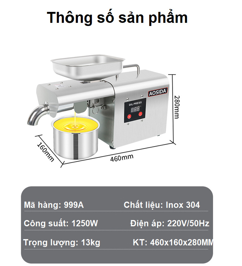 Máy ép dầu thực vật nóng và lạnh dùng trong gia đình, công suất 1100W - Thương hiệu Anh Quốc cao cấp AOSIDA 999A - Aosida là thương hiệu nổi tiếng đến từ Anh Quốc,