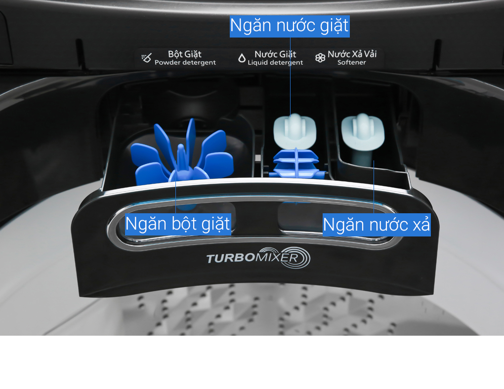 Đặc điểm nổi bật Tự động phân bổ nước giặt xả chính xác theo khối lượng đồ giúp tiết kiệm chất tẩy Ngăn chứa nước giặt xả lớn, chỉ cần đổ đầy 1 lần có