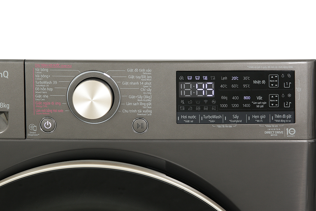 - Hình ảnh chỉ mang tính chất minh họa Tiện ích - Chức năng chẩn đoán thông minh bằng điện thoại: Giúp phát hiện nhanh lỗi trên máy, từ đó sớm có hướng xử lý. - Tự động phân bổ nước giặt: Tự động chia lượng bột giặt một cách tối ưu nhất, nhờ đó có thể giặt khoảng 35 mẻ giặt, tiết kiệm bột giặt hiệu quả. - Vệ sinh lồng giặt: hạn chế vi khuẩn hình thành trong lồng giặt, quần áo được giặt sạch hơn, tăng tuổi thọ sản phẩm. *Hình ảnh chỉ mang tính chất minh họa - Cho phép điều khiển máy giặt từ xa qua ứng dụng LG ThinQ: Điều khiển bằng giọng nói, điều khiển từ xa và giám sát hoạt động của máy giặt nhanh chóng và chính xác.