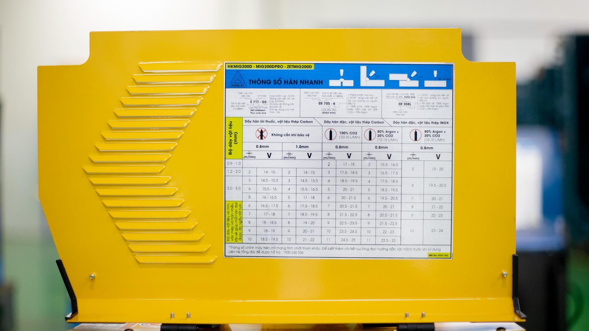 Thông số kĩ thuật như sau Phạm vi điều chỉnh dòng hàn 20A – 200A Công suất 4.6 KVA Nguồn điện áp 220V / 50Hz-60Hz Thương hiệu Nhật Bản Sản xuất tại Trung Quốc