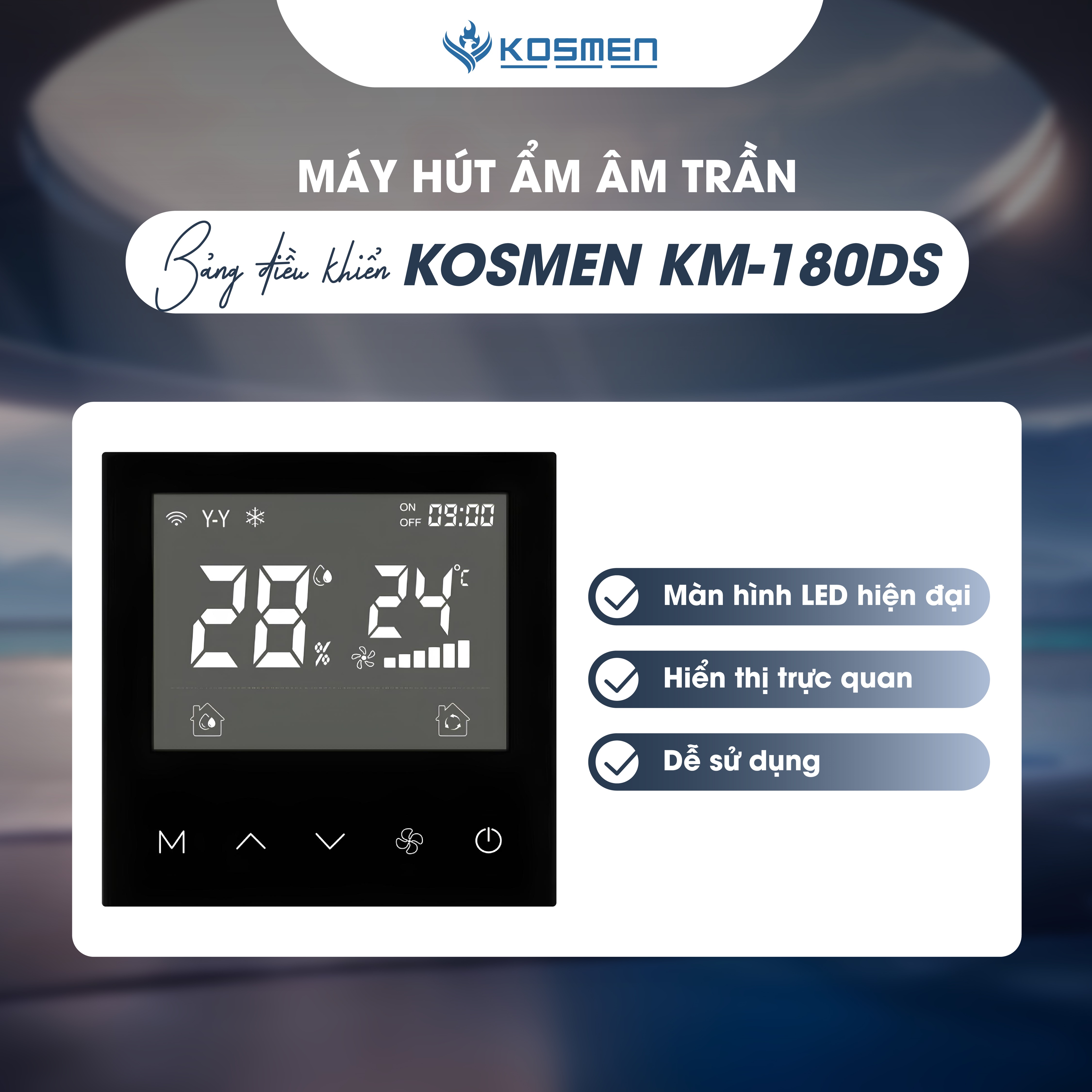 ✨Máy Hút Ẩm Âm Trần Kosmen KM-180DS Công Suất 180 lít/ngày - Hàng Chính Hãng BH 24 tháng