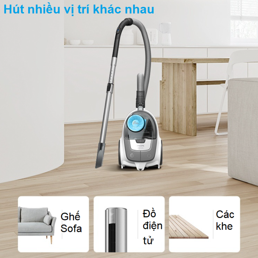 Máy hút bụi Philips XB2023/81 công suất tối đa 1800W – BH 12 tháng Công nghệ PowerCyclone 4 duy trì được hiệu suất cao trong thời gian dài Công nghệ PowerCyclone 4 tăng nhanh luồng