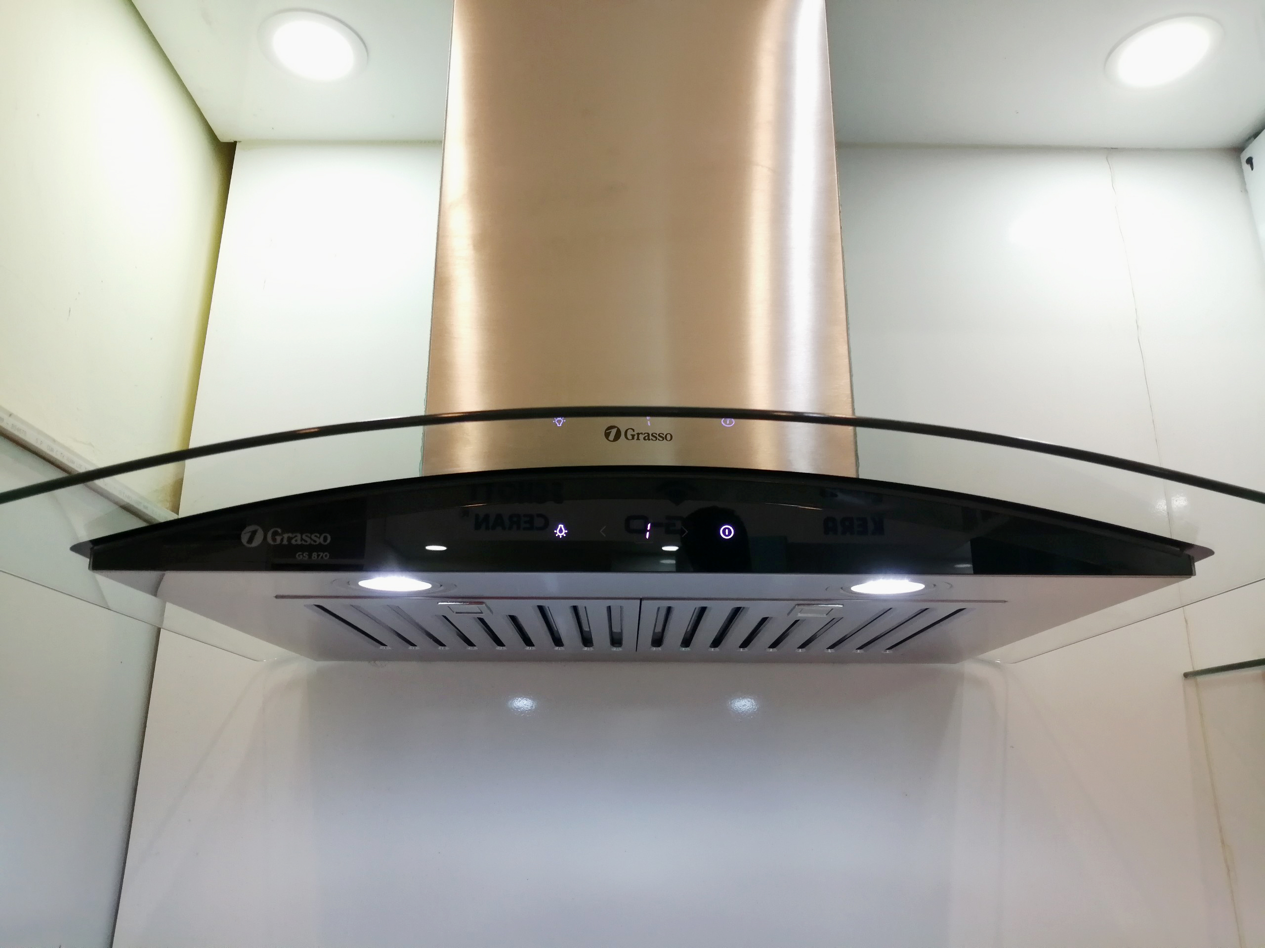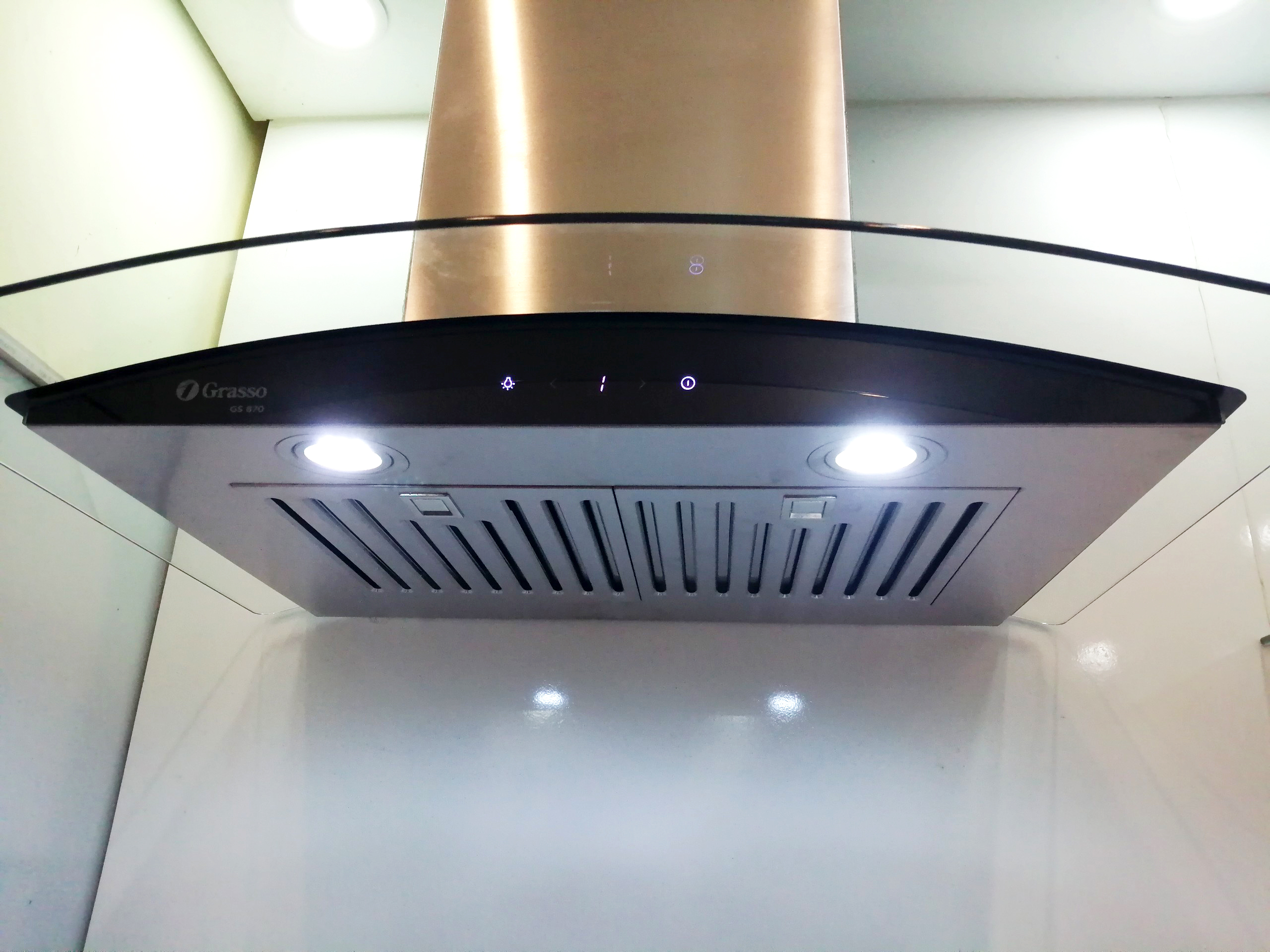 Máy hút mùi GS 870/890 được trang bị một bảng điều khiển phím nhấn cảm ứng với 3 mức công suất để bạn lựa chọn phù hợp với nhu cầu nấu nướng của mình.