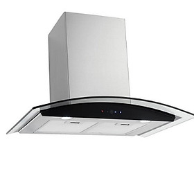 Kiểu máy kính gắn tường - mặt kính cong Chất liệu Inox - kính Màn hình LCD Điều khiển bằng cảm ứng - hẹn giờ tắt Khử mùi bằng than hoạt tính, ống thoát Ø150