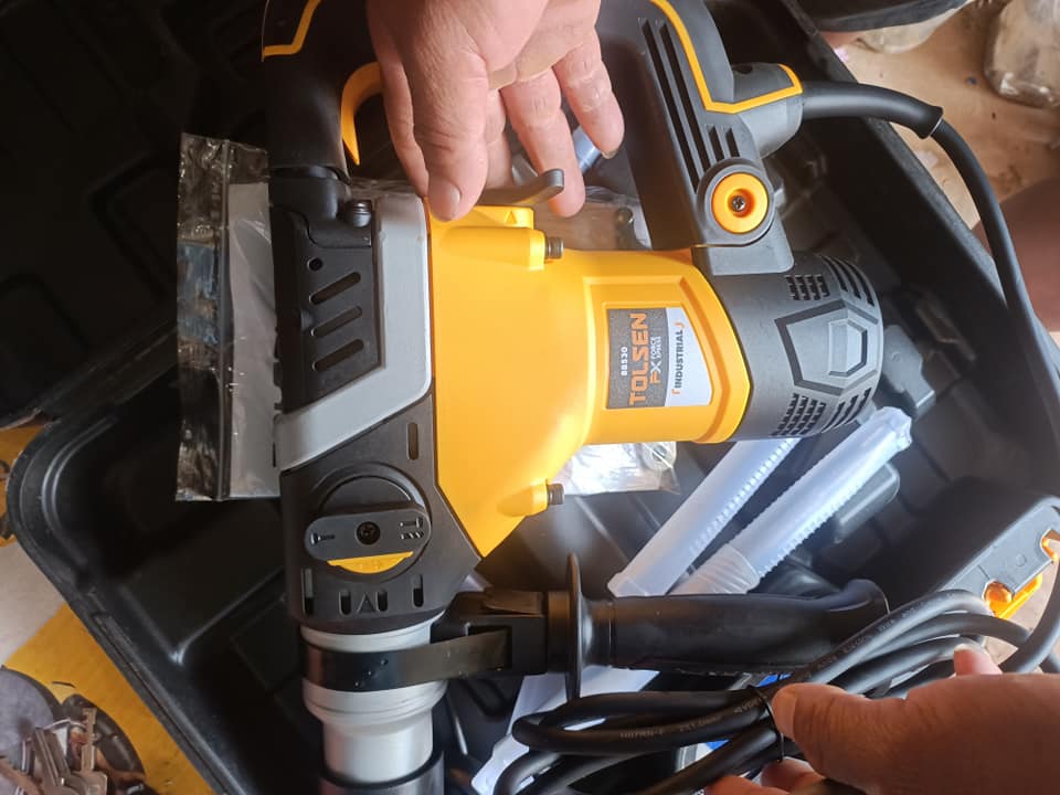 Mua tại TiktokMÁY KHOAN BÚA 3 CHỨC NĂNG 28MM 1.100W TOLSEN 88530 Máy khoan búa Tolsen 88530 là dòng máy khoan được ứng dụng sử dụng rộng rãi trong các công thi thi công xây dựng, thi công nhà ở, hoặc trong các ngành công nghiệp cơ khí, Tolsen 88530 có thiết kế đẹp, gọn và tiện dụng, với khả năng khoan gỗ 42mm, khoan thép 13mm và khoan bê tông 28mm. Lực khoan mạnh mẽ, đạt 4.5J và công suất đạt 1100W, giúp công việc của người thợ dễ dàng, hoàn thành nhanh mà không tốn quá nhiều sức lực.