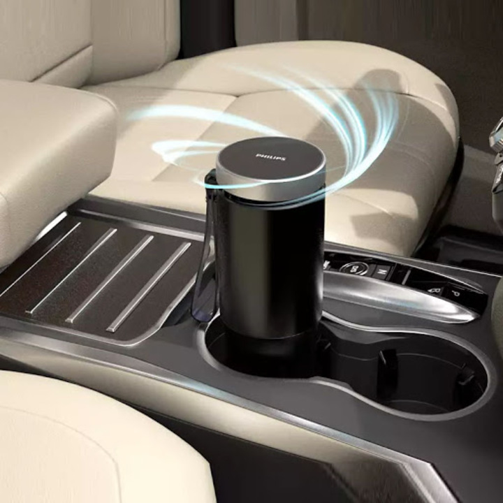 Máy khử mùi, lọc không khí dạng cốc trên xe ô tô cao cấp Philips GP5601 công suất 5,5W tích hợp 5 công nghệ tiên tiến bảo vệ không khí trong xe Philips là tên