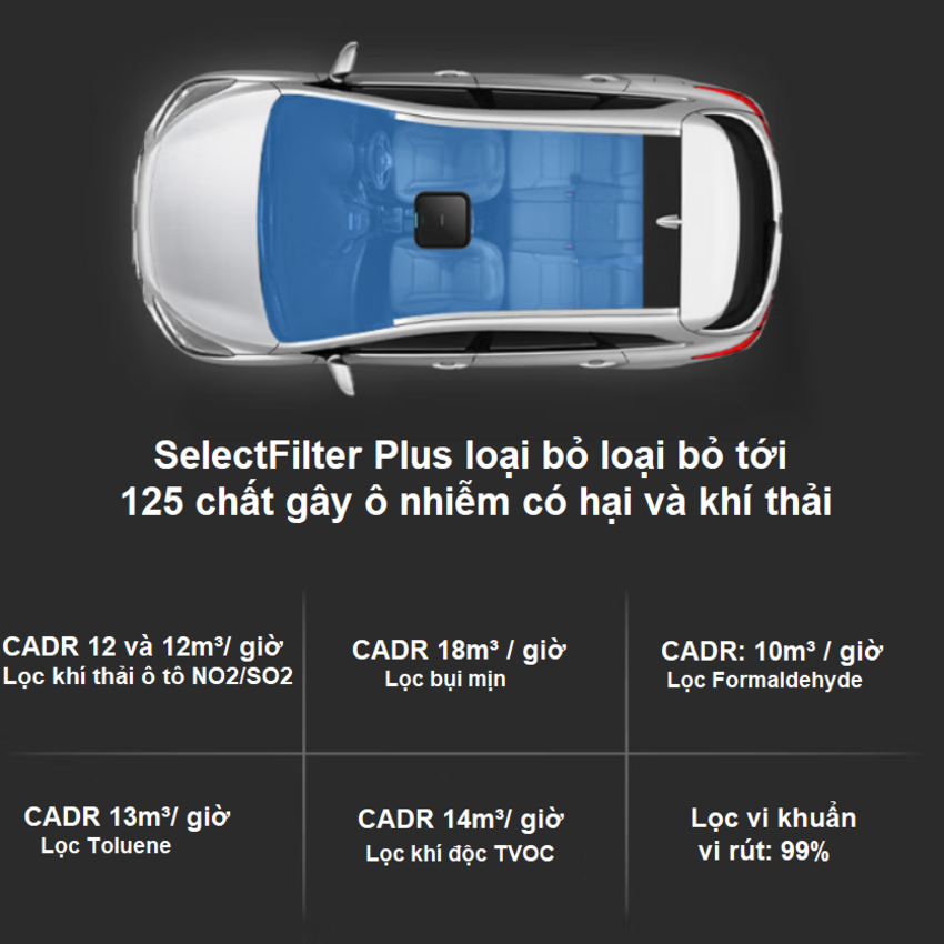 - Khử mùi hiệu quả: Lọc khí bẩn, khí độc, mùi xăng xe, khói thuốc một cách triệt để. Giúp chống say xe.