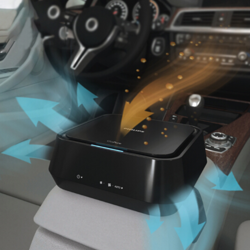 Máy khử mùi, lọc không khí dạng cốc trên xe ô tô cao cấp Philips GP5601 công suất 5,5W tích hợp 5 công nghệ tiên tiến bảo vệ không khí trong xe Philips là tên