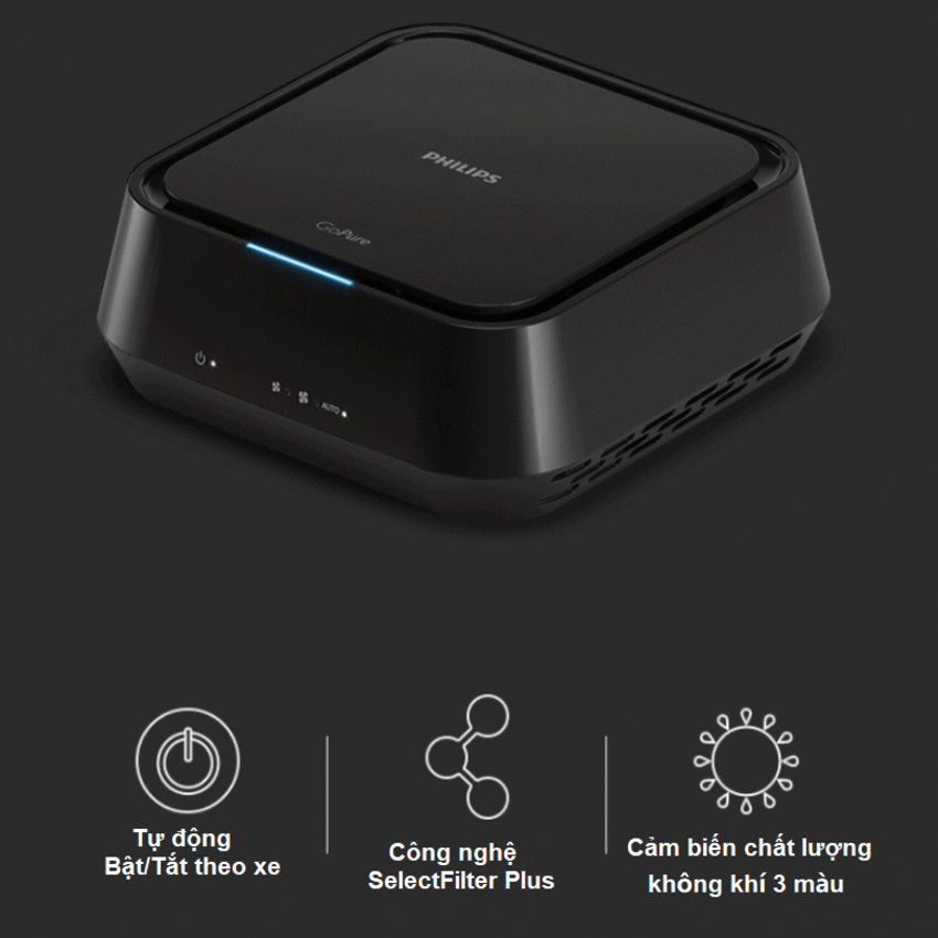 Máy lọc không khí ô tô Philips hút mùi hôi, chất gây ô nhiễm bao gồm vi khuẩn, vi rút GoPure GP5301 đèn báo 3 chế độ Công nghệ lọc Philips SelectFilter Plus làm sạch