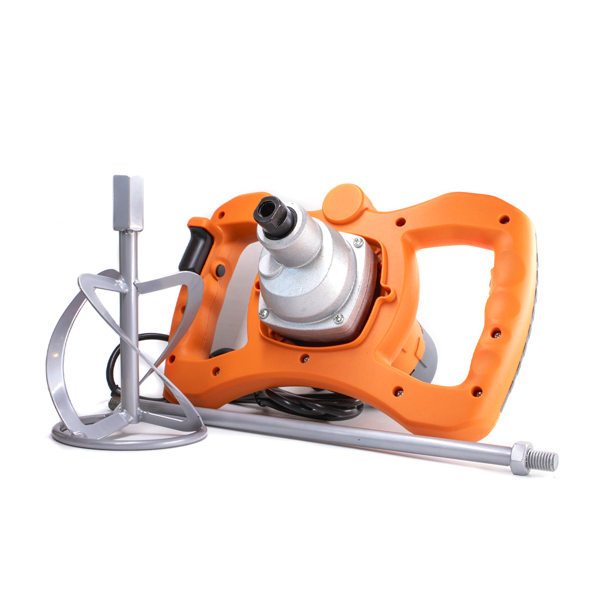 Máy có trang bị tay cầm hai bên giúp việc khuấy trở nên ổn định và dễ dàng, tránh rung lắc nhiều gây bắn sơn ra ngoài. Thân máy trộn sơn được làm từ thép và nhựa cứng cao cấp đảm bảo độ bền.