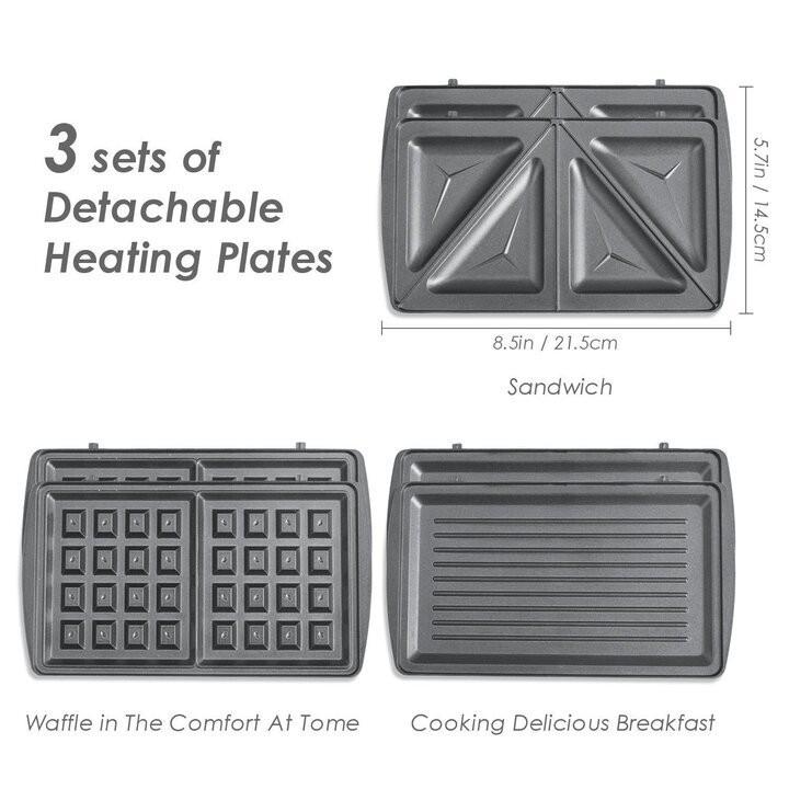 Máy nướng 3 trong 1 Máy làm bánh 3 trong 1 Tiross TS513 với 3 loại vỉ nướng đi kèm, bạn có thể làm các loại bánh khác nhau như bánh sandwich, bánh waffle, bánh