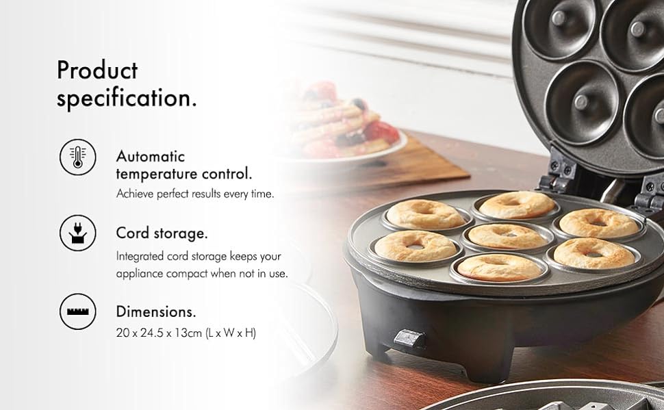 Máy làm bánh quế donut Vonshef 3in1 có kích thước khiêm tốn nhưng hiệu quả lại không ngờ. Chắc hẳn bạn sẽ nghĩ máy làm bánh quế donut Vonshef này có thể làm được nhiều loại bánh đẹp