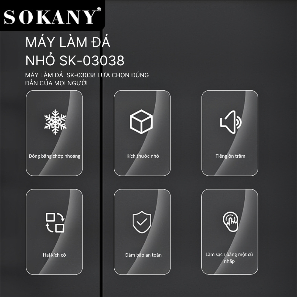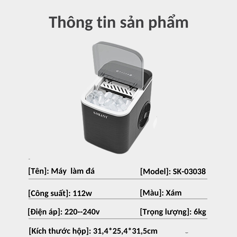 Mua tại TiktokMáy làm đá tự động gia đình SOKANY làm đá nhanh trong vài phút, tiện dụng tiết kiệm điện - SK03038 - HÀNG CHÍNH HÃNG [BẢO HÀNH CHÍNH HÃNG 12 THÁNG - ĐỔI TRẢ TRONG 15 NGÀY ĐẦU]