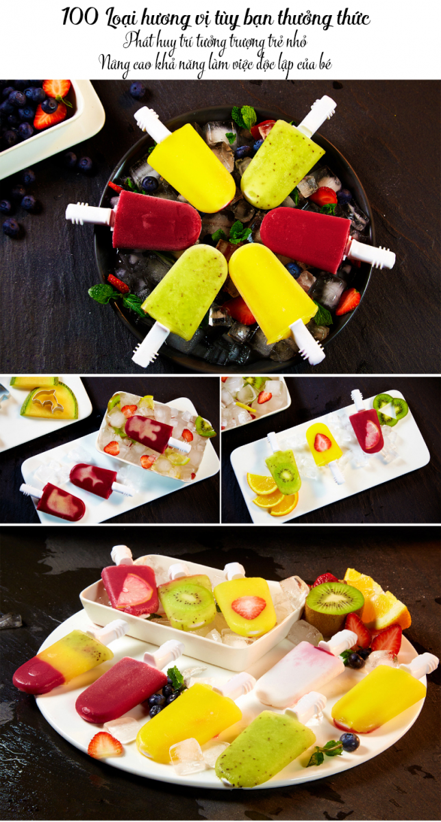 Nguyên liệu làm nên những cây kem là những món trái cây tươi ngon mà bạn chuẩn bị và sẵn có nên tuyệt đối an toàn với mọi người.