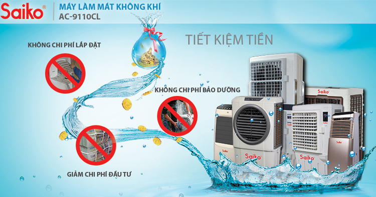 Máy làm lạnh Saiko tiết kiệm chi phí ban đầu khoảng 30 - 40% so với máy điều hoà không khí cùng diện tích sử dụng, không tốn chi phí lắp đặt, bảo trì. Trong cùng một diện tích sử dụng thì thiết bị chỉ tiêu hao bằng 10% đến 12% điện năng so với máy điều hòa không khí.