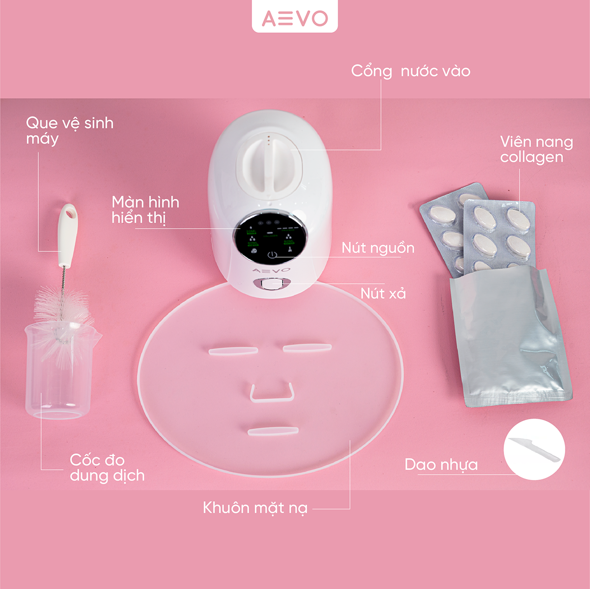 AEVO Mask Maker là thiết bị làm mặt nạ từ trái cây và viên dưỡng chất Collagen.