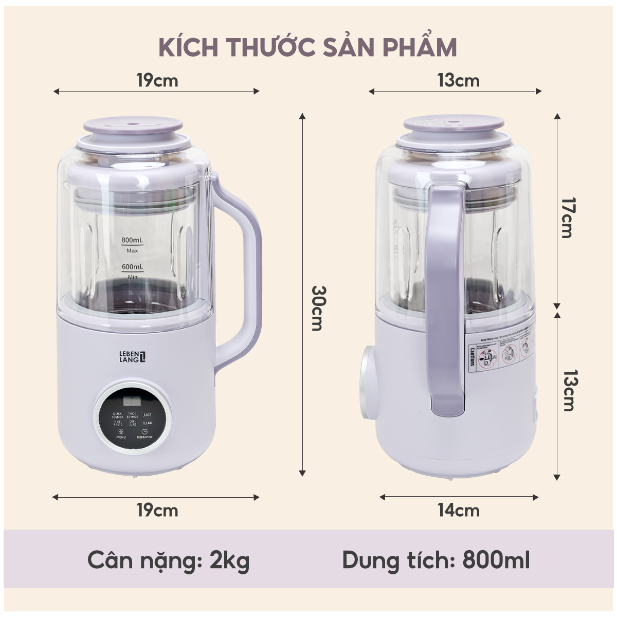 - Với dung tích 800ml, máy xay đa năng Lebenlang phù hợp để phục vụ từ 3-4 cốc sữa cho mỗi lần sử dụng, lý tưởng cho gia đình.