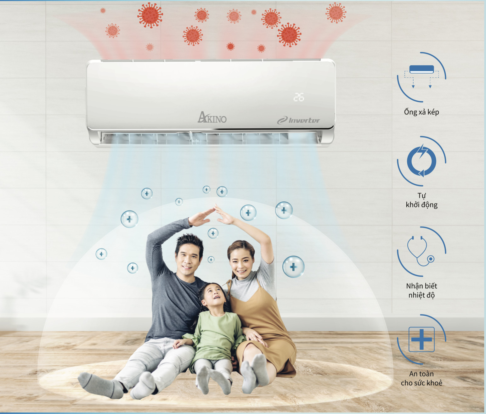 Máy Lạnh AKINO 1HP AKN-9CINV1FA 9000BTU Inverter Có thiết kế hiện đại, trang nhã,tinh tế. Tiết kiệm điện năng. Khả năng tự làm sạch vượt trội và ngăn chặn vi khuẩn. Tự khởi động lại