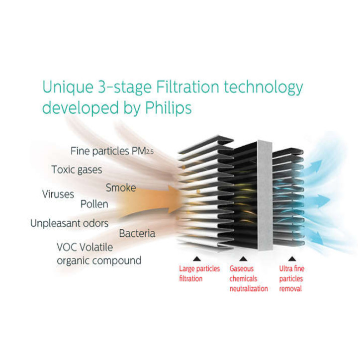 - Sử dụng công nghệ Airmax đời mới nhất của Philips, lọc 3 giai đoạn mạnh mẽ: Bộ lọc không khí xeon GoPure của Philips có hệ thống lọc không khí nhanh và hiệu quả. SelectFilter Plus 3 giai đoạn độc đáo loại bỏ tới 125 chất gây ô nhiễm có hại và khí thải, thông qua các lớp HEPA và HESA. Được chứng nhận độc lập bởi Airmid Healthgroup, công nghệ SelectFilter Plus cũng loại bỏ tới 90% các chất gây dị ứng phấn hoa trong không khí.