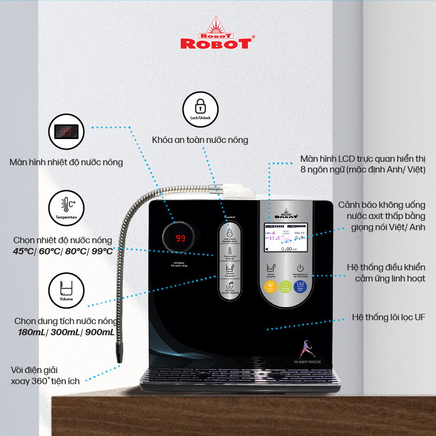 Máy lọc nước điện giải ion kiềm ROBOT - Đạt Thiết bị Y Tế Châu Âu, giải pháp nâng tầm cuộc sống