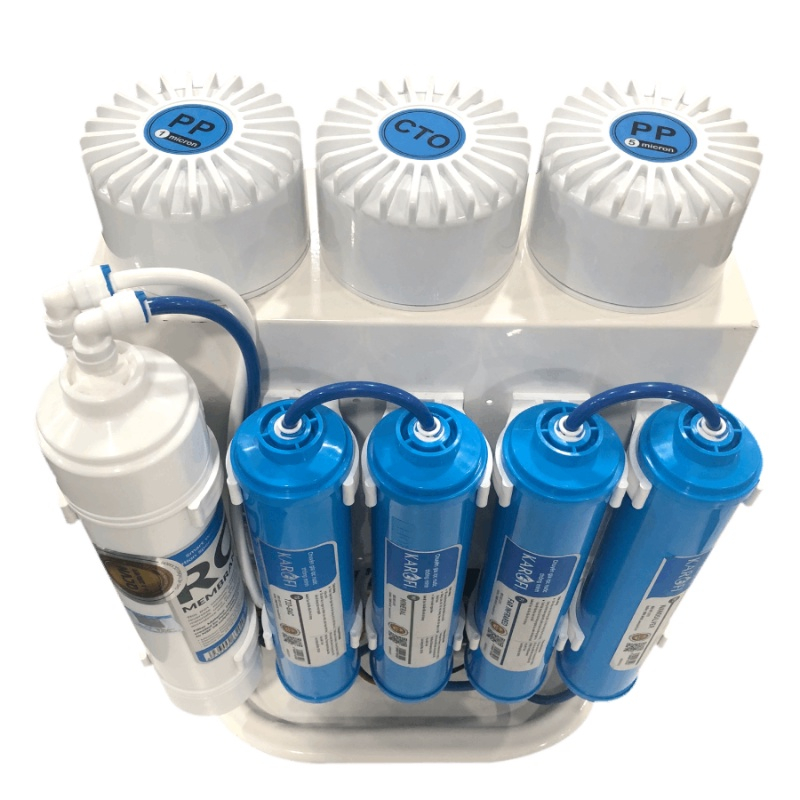 - Hệ thống lọc: 8 lõi (3 Lõi lọc thô, màng RO thay nhanh Hàn Quốc, 4 Lõi lọc chức năng)