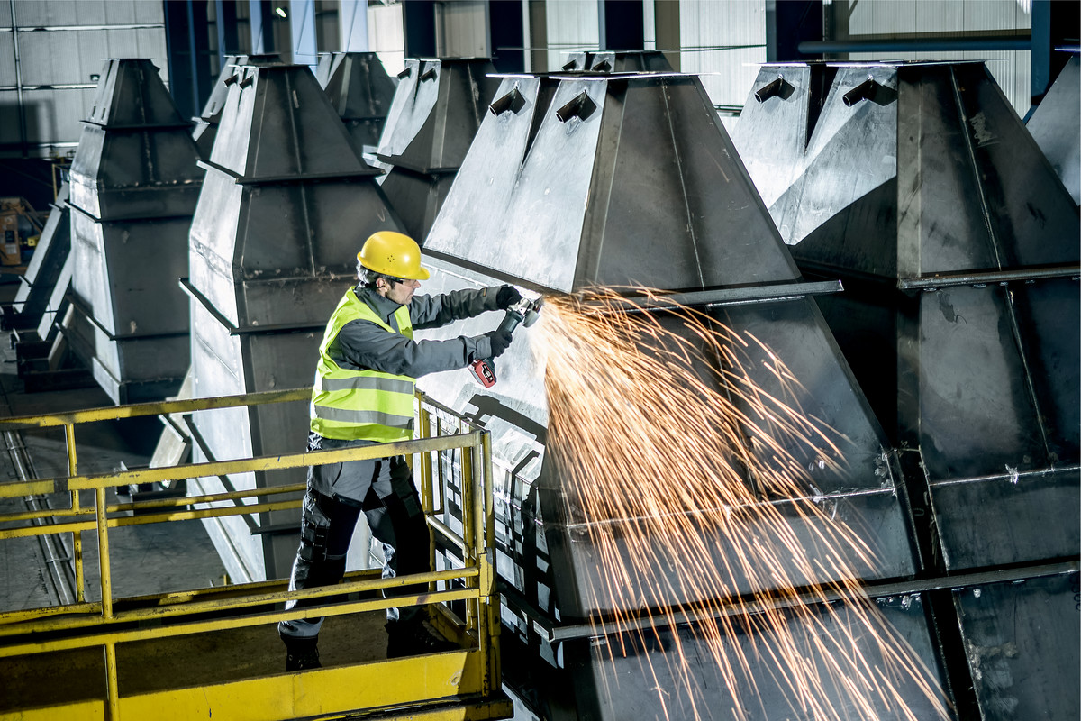 Máy mài góc hạng nặng với thời gian làm việc lâu dài với một bộ chổi than, Mang lại sức mạnh và hiệu suất tối đa cho việc cắt và mài của bạn với Máy