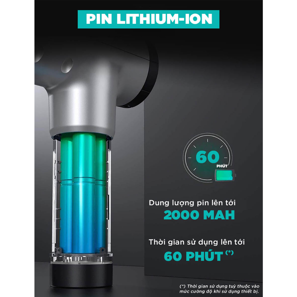 6 CẤP ĐỘ MASSAGE: Máy massage cầm tay Kingtech KH-320 bao gồm 6 lựa chọn tốc độ cho bạn, giúp cơ bắp được massage sâu, lý tưởng để phục hồi cơ bắp sau khi tập thể dục hoặc sau một ngày làm việc mệt mỏi. Hiệu suất PIN cao: Sản phẩm sử dụng Pin lithium-ion có thể sạc, Công suất 2200m, có thể kéo dài khoảng 45 - 60'.
