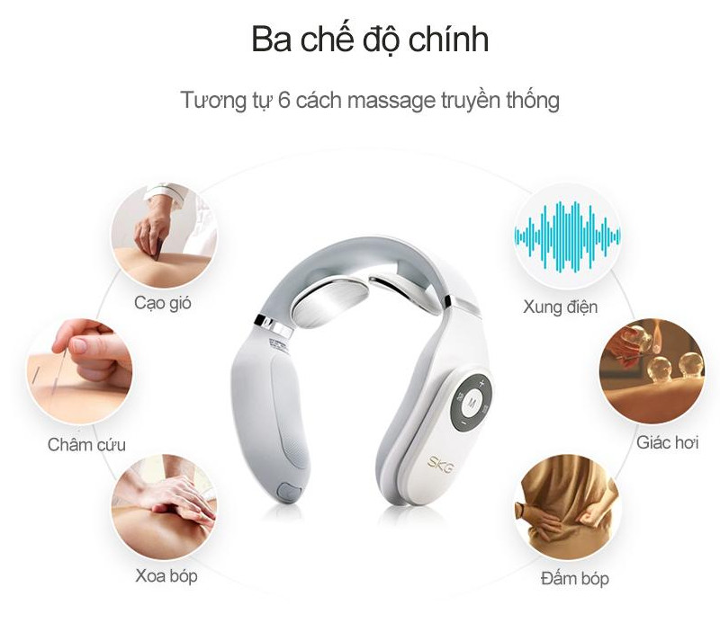 3 chế độ hoạt động của máy: chế độ tự động giúp chăm sóc cổ hàng ngày, chế độ làm diệu thích hợp cho điều trị chấn thương ở cổ, chế độ phục hồi phù hợp với giảm các căng thẳng mãn tính ở cổ.