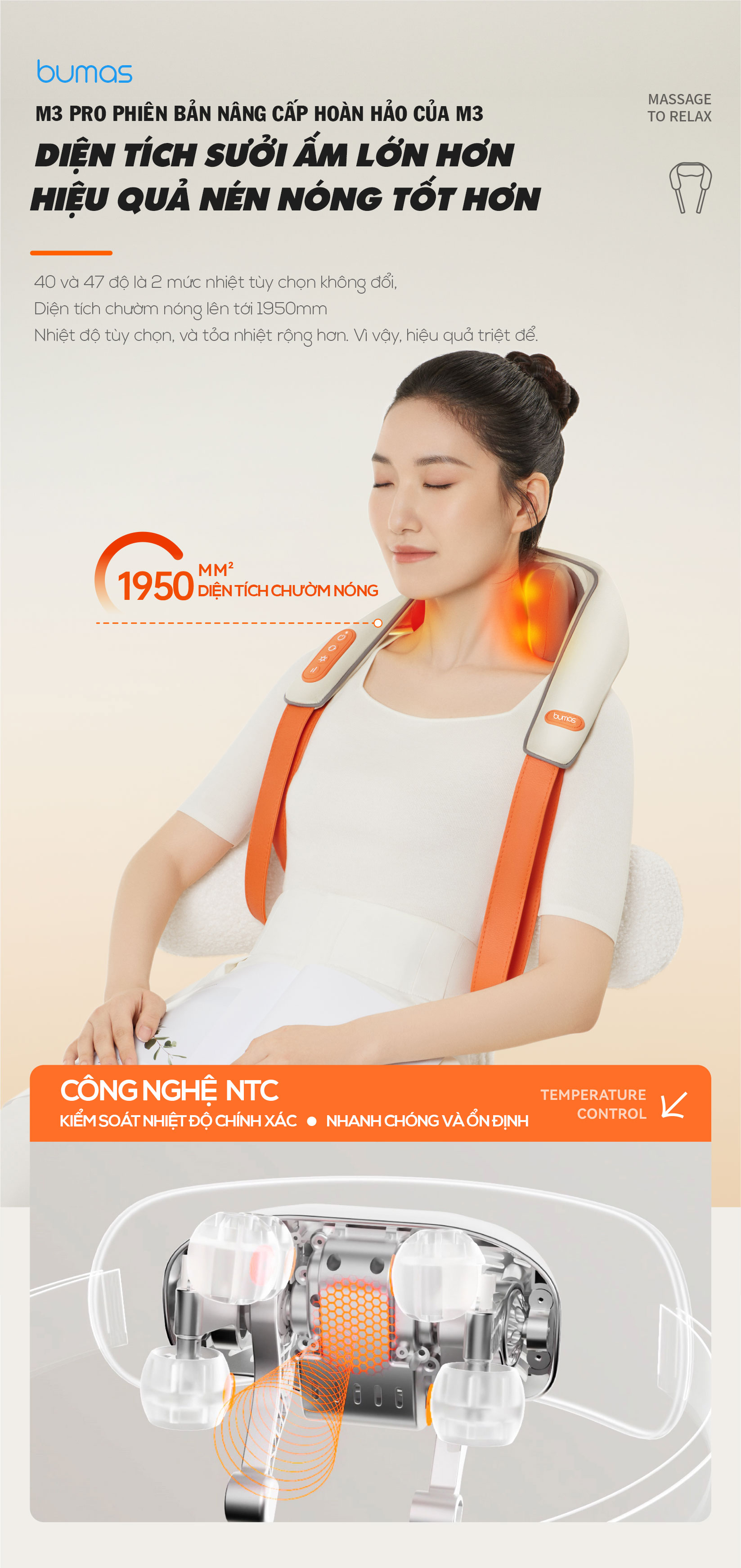 CÔNG NGHỆ SƯỞI ẤM NTC: Diện tích sưởi ấm lớn hơn, hiệu quả nén nóng tốt hơn lên tới 1950mm2