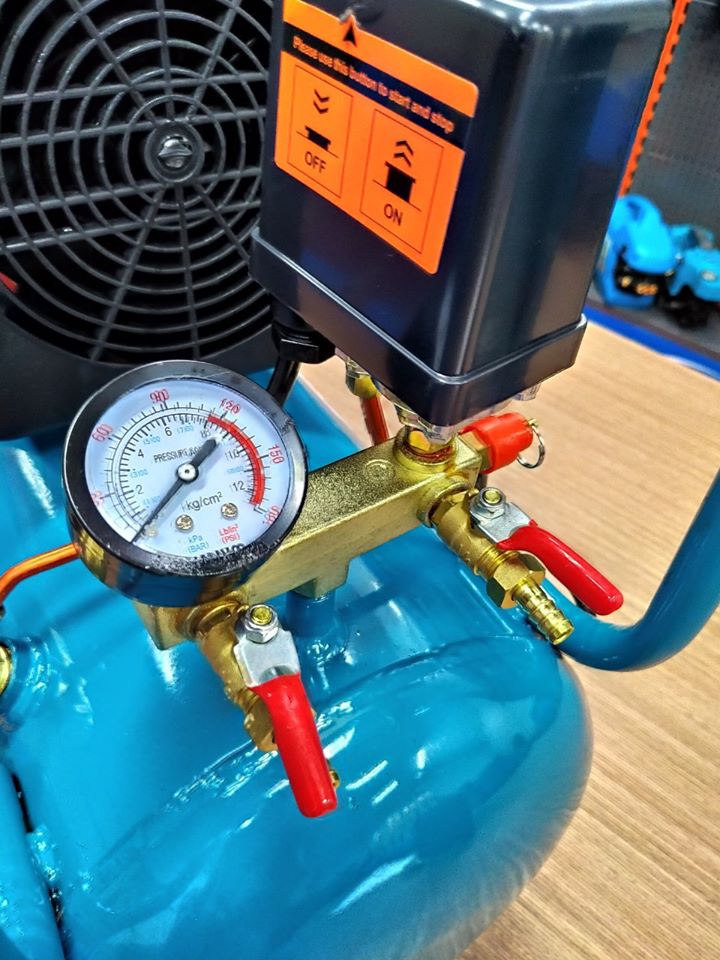 Bình chứa khí nén có dung tích 36 lít giúp lưu trữ được lượng khí nén nhiều hơn để có thể sử dụng được liên tục, tránh làm gián đoạn công việc. Bình chứa khí được phủ sơn tĩnh điện màu xanh rất đẹp, chống điện giật và chống thấm nước.
