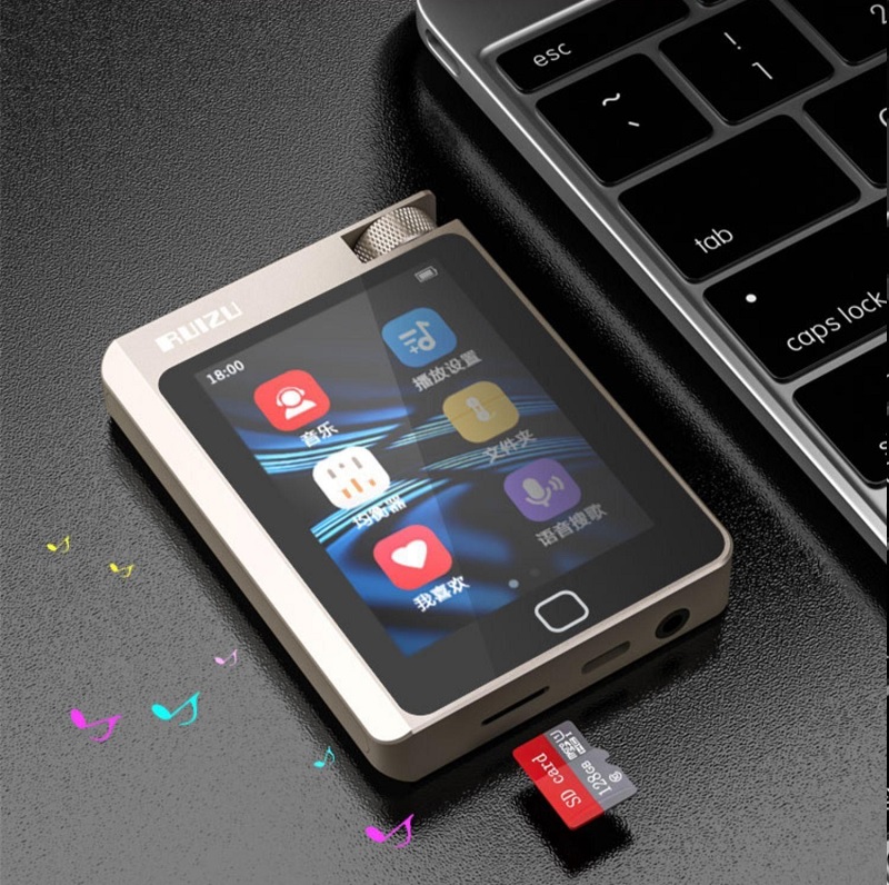 - Máy nghe nhạc RUIZU D19 thiết kế nhỏ gọn, kiểu dáng thể thao, màn hình màu TFT 2,4 inch cảm ứng mang lại hình ảnh sắc nét, kết nối bluetooth 5.0 ổn định trong phạm vi