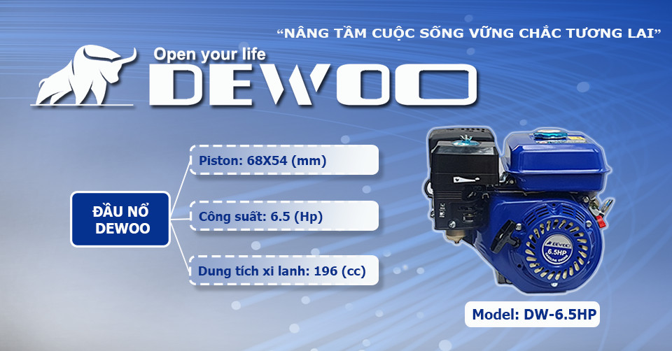 Máy nổ DEWOO DW-6.5HP sử dụng nhiên liệu xăng